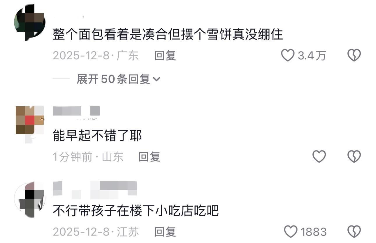 那条走红的视频里,早餐内容很简单:一盒牛奶、几块豆沙面包,以及一包被网友要点“吐槽”的旺旺雪饼。一条获赞3.4万的谈论写道:“整个面包看着是将就,但摆个雪饼线万条评论。
